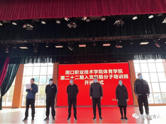 在党中央召开十九届六中全会之际,周口职业技术学院体育学院于2021年11月10日举行第二十二期入党积极分子培训班开班仪式。本次培训班是遵照发展党员细则,按照校党委要求,由周口职业技术学院体育学院党总支精心筹备举办。